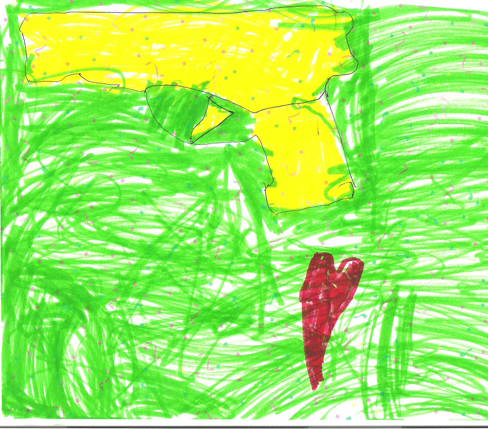 This is a tracing from a toy gun. Notice the heart. He told me that means he loves guns.