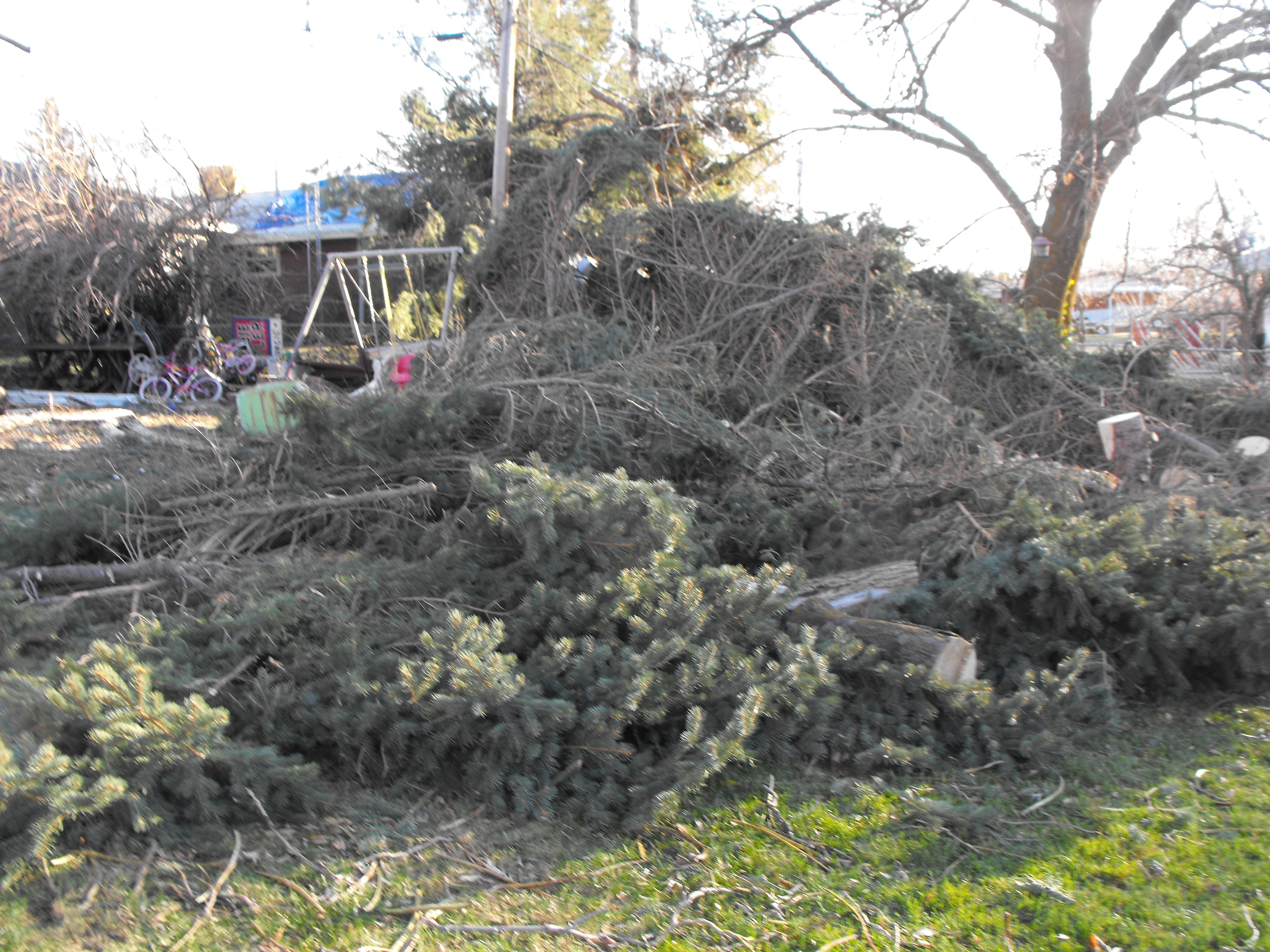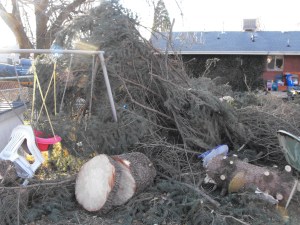 My parents live less than 20 miles away from us and they had it much worse. A giant pine tree in their back yard crashed down early Thursday morning, narrowly missing their home. Their house was safe, but the tree took down a major power line and they had a live wire downed in their back yard.
