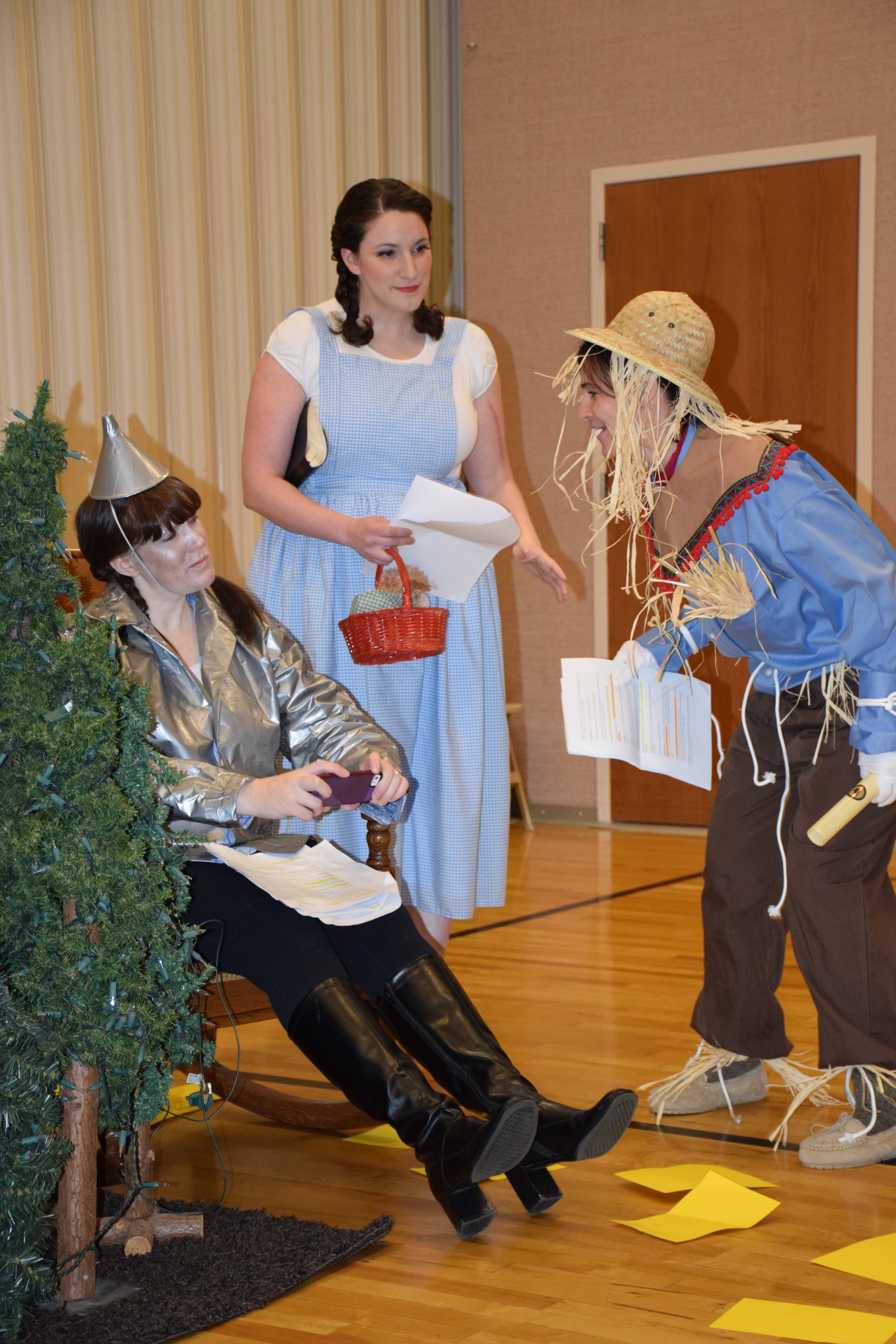 The committee and I wrote up a script (you can download that here) where Dorothy, Scarecrow, Tin Man and the Lion take a journey to the Emerald City while following the yellow brick road.