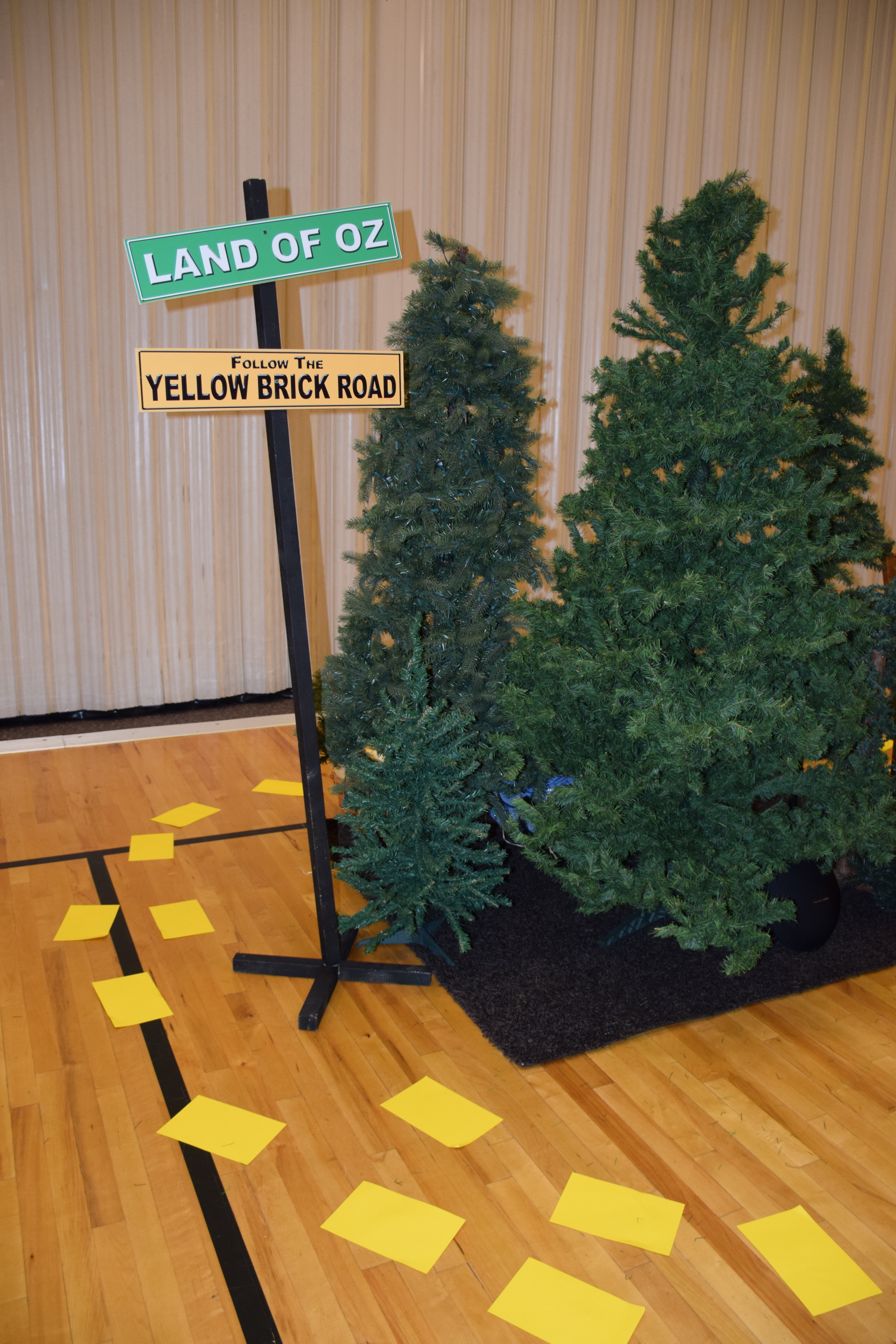 We put mini trails of yellow brick road from the foyer into the cultural hall, guiding people into the gym.