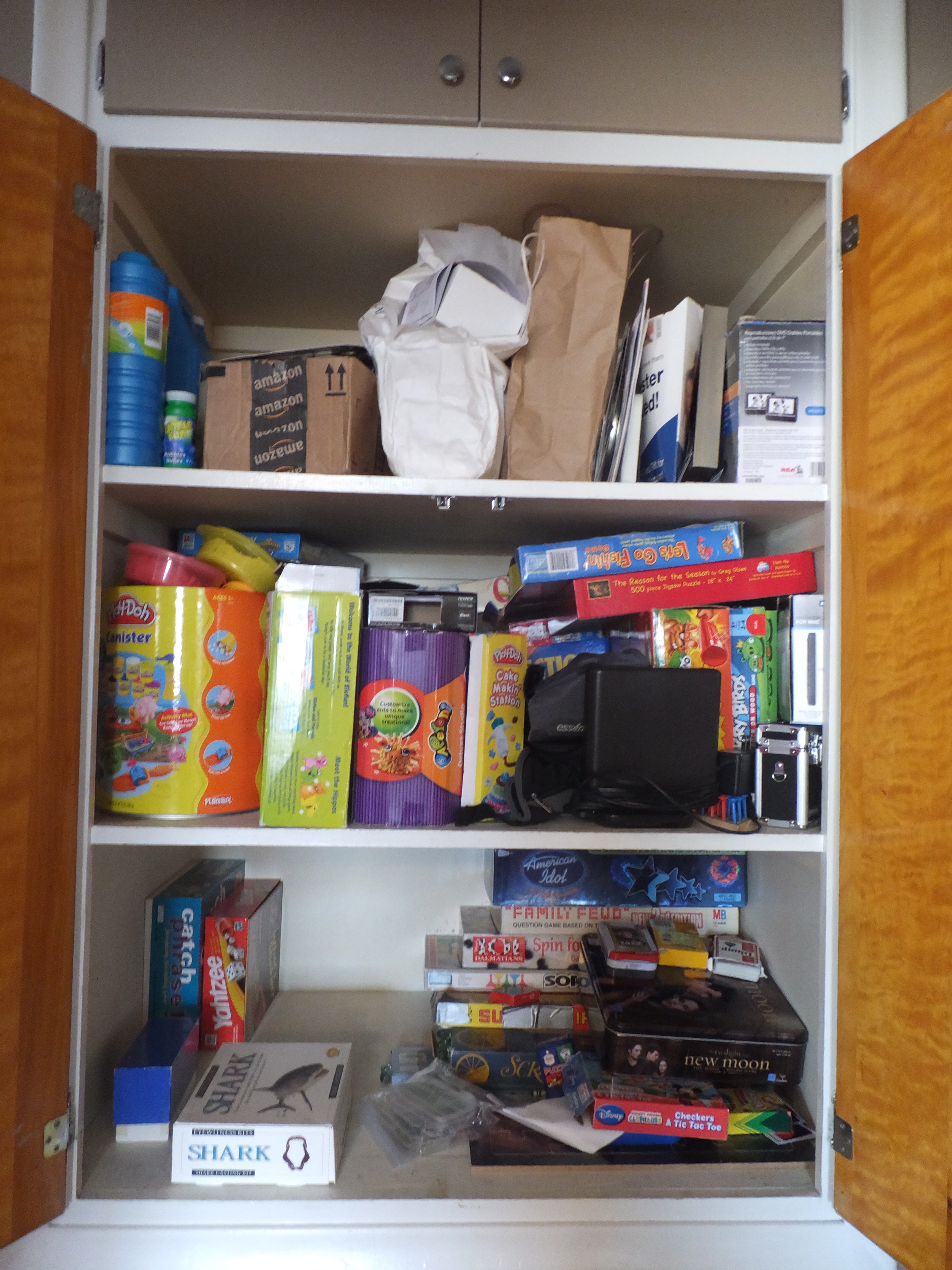 I let our games sit in the corner of my living room until I got up the courage to sort my way through the crap in the closet. And when I finally did it took all day.