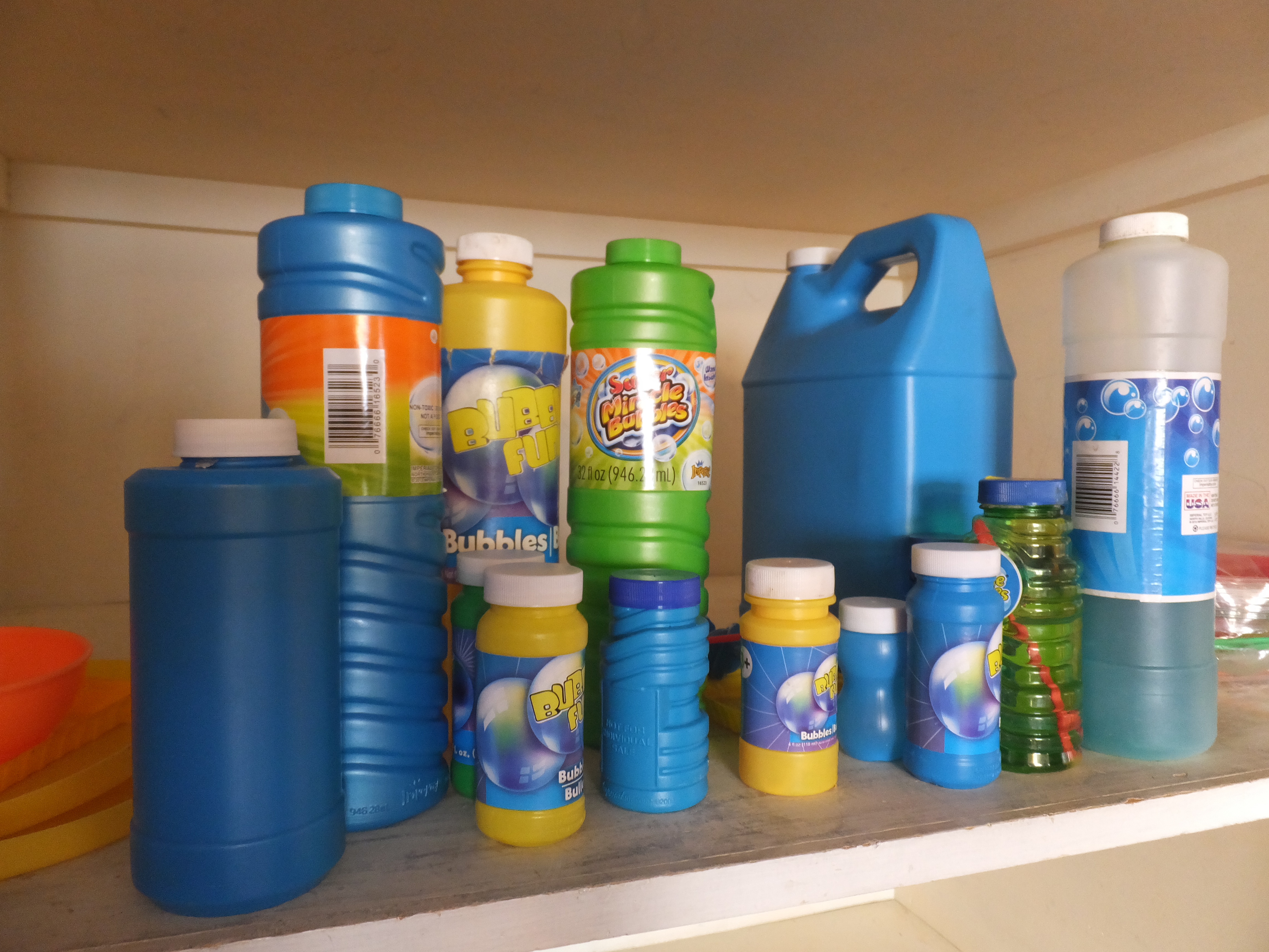 I’m sure I had that many because if I glanced quickly at the closet I couldn’t see any bubble bottles. That’s because they were hiding behind other useless things. It would take us 5 years to go through all of those bubbles.