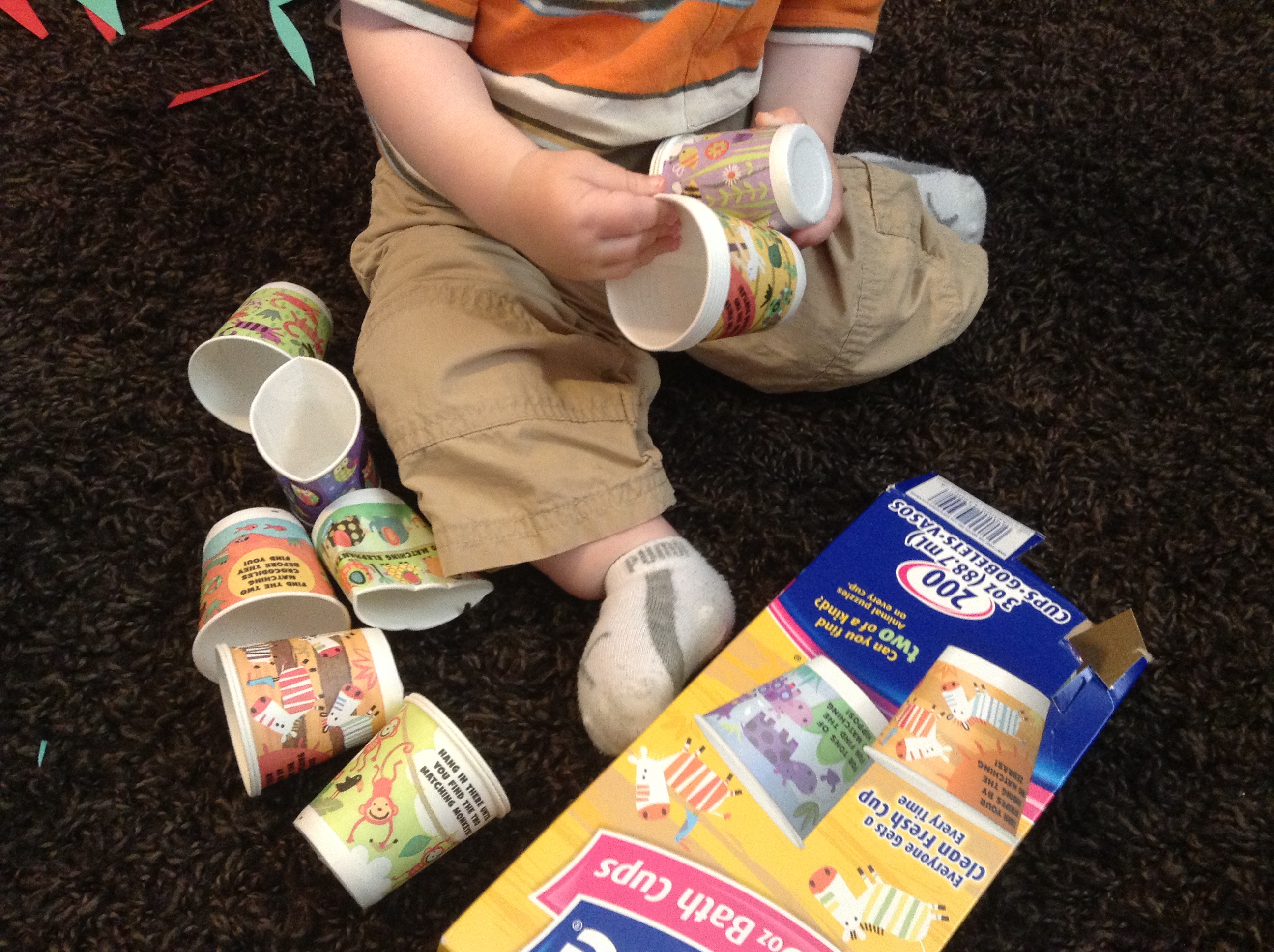 I traced what felt like a million of those patterns. Then I started cutting them out and gluing them onto the paper cups.