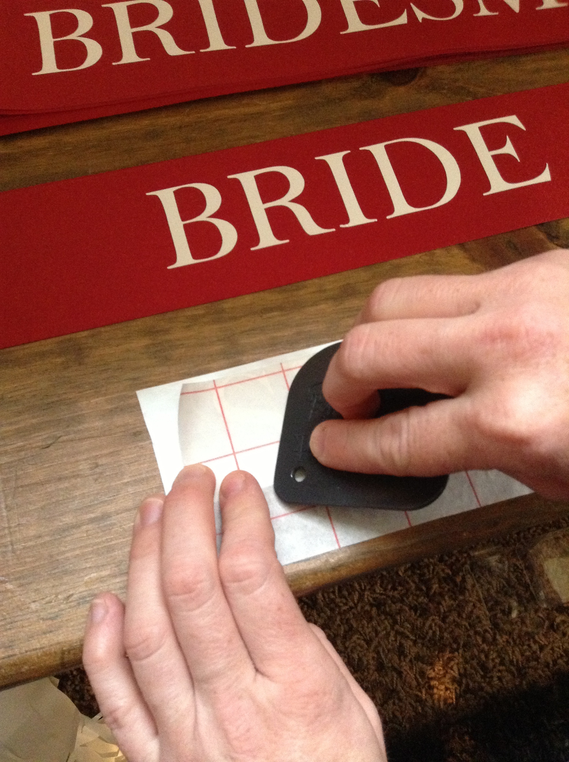 Then I cut out white vinyl BRIDESMAID letters on my Silhouette SD cutting machine.