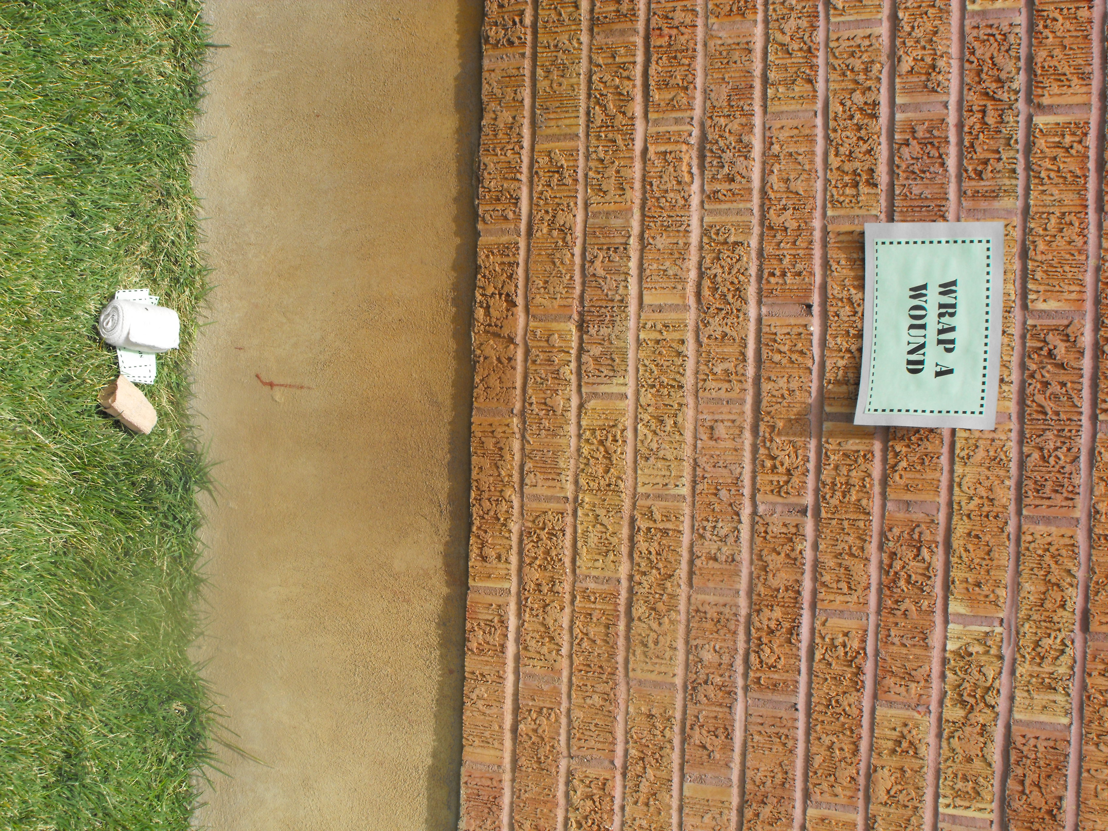 I used double-sided tape to put the vinyl on the ribbon and smoothed it down with my handy pot scrubber.