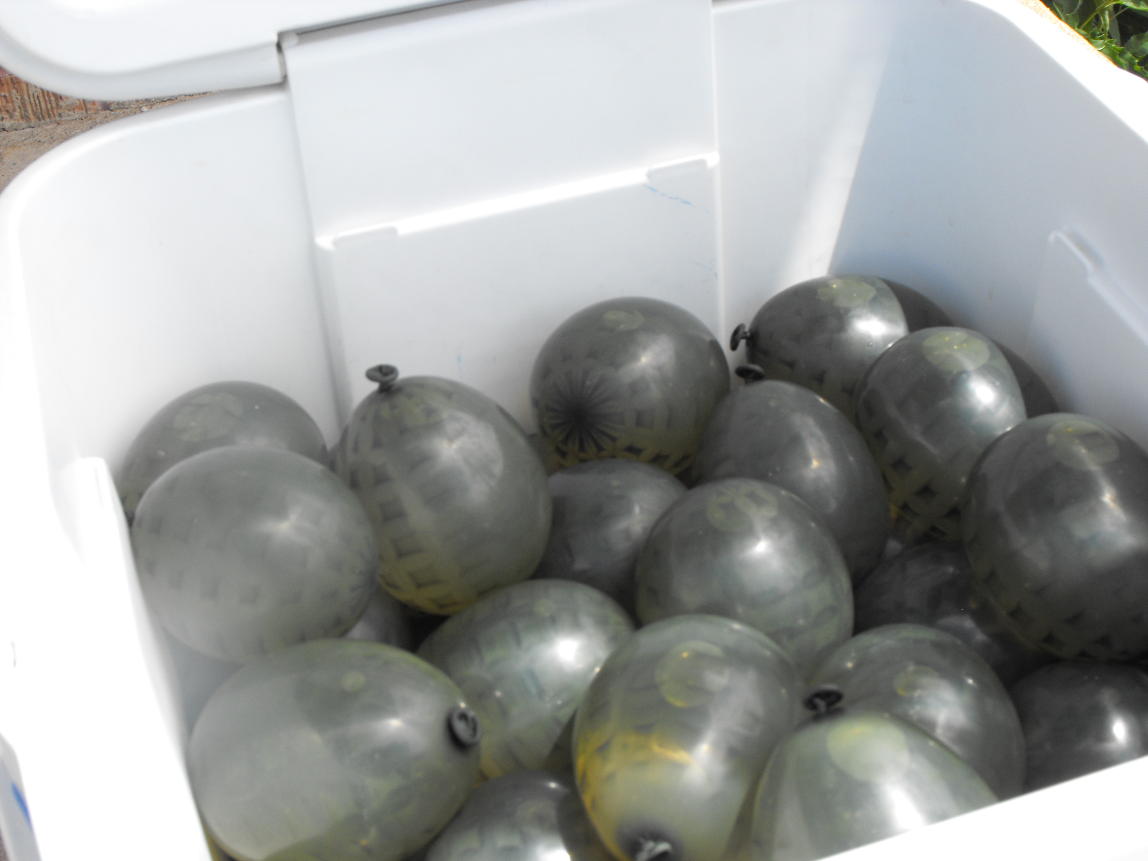 I put everything in big red tubs that I found at the local Dollar Store. The tubs doubled as basins that we used to soak our tired feet.